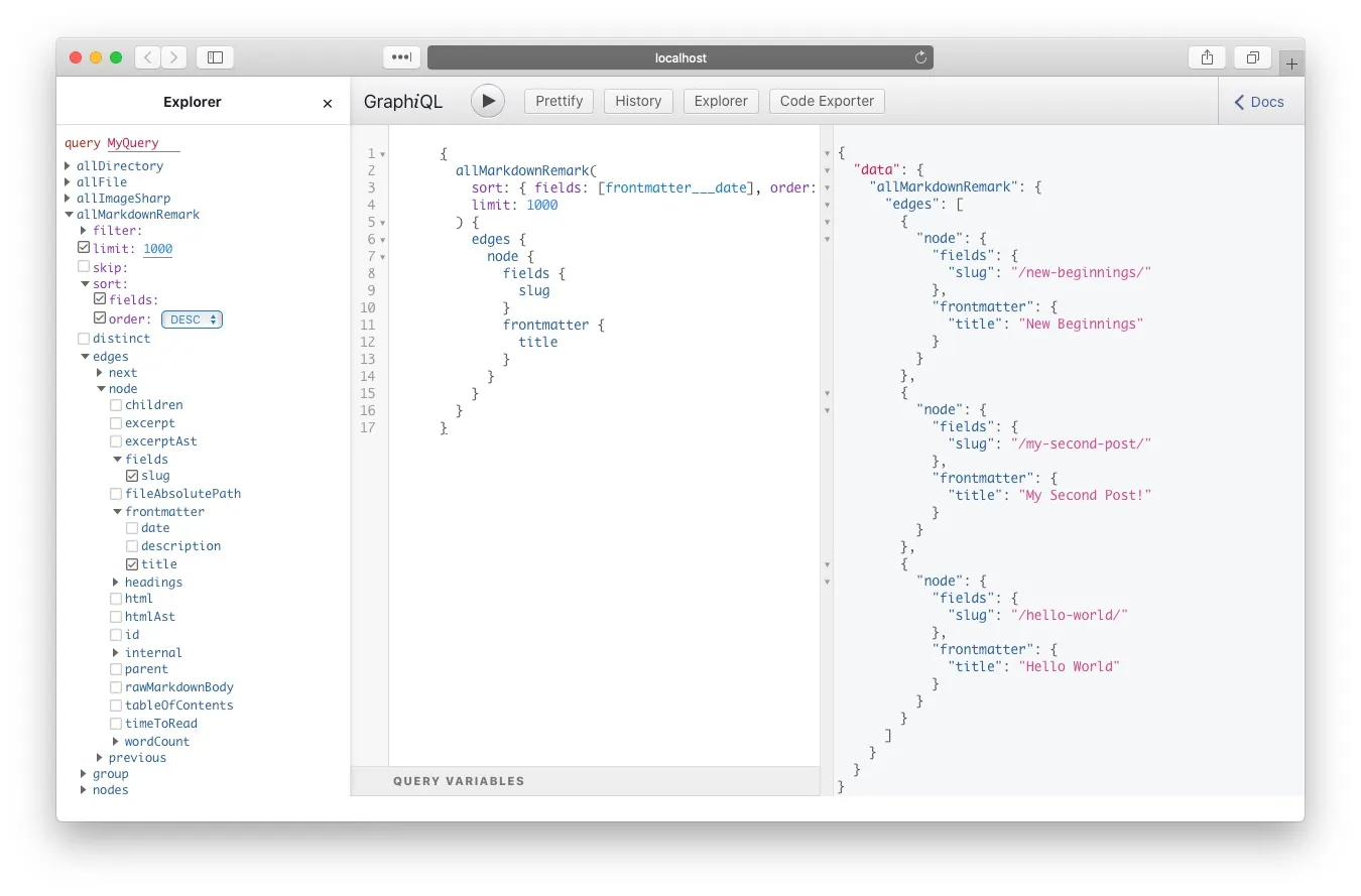 View GraphiQL, an in-browser IDE, to explore your site's data and schema
